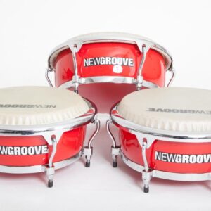 Par de Bongô Vermelho com pele sintética empachada – Polegadas 7.5 e 8.5